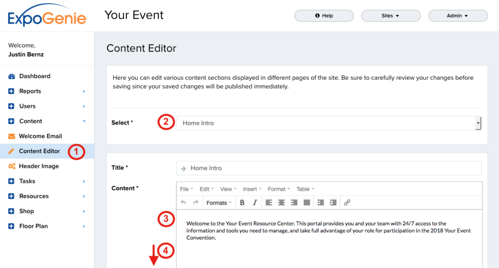 - Select Content in the main menu and click Content Editor.